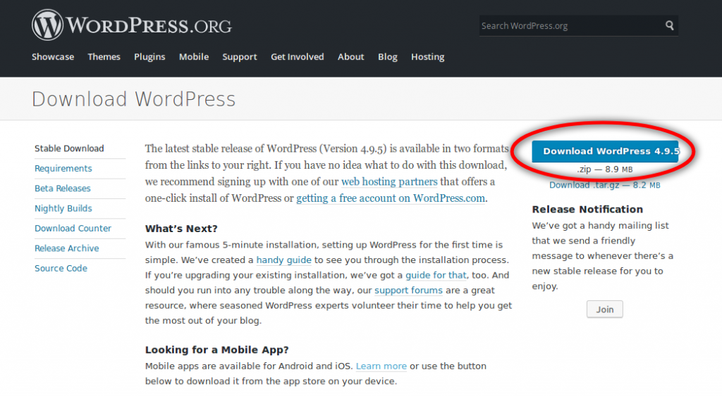 the first thing you need to do is to download wordpress so go to wordpress download page and download the latest release.Â