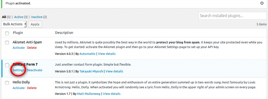 Now our plugin is activated let’s click on “settings” as shown below  to go to the plugin settings.